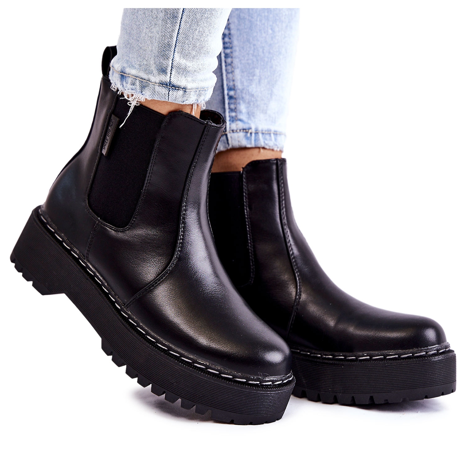 Das Modell zeichnet sich durch ein sehr komfortables Design aus. Der isolierte Innenraum mit einer angenehm anzufassenden Schuhdecke sorgt auch an den kältesten Tagen für Komfort und Wärme. Eine flache Sohle mit Profil und ein 4 cm hohes Plateau garantieren Stabilität und machen sie perfekt für alltägliche Ausflüge. Darüber hinaus verleiht die abgerundete Spitze einen Hauch von Eleganz.