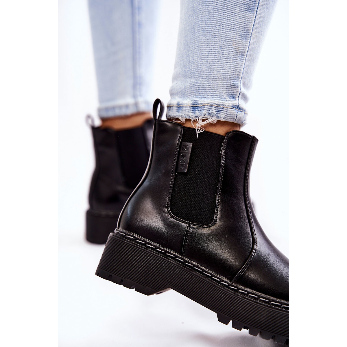 Wir präsentieren die isolierten Slip-On-Stiefel Big Star II274101 in klassischem Schwarz, die mit Sicherheit zu einem unverzichtbaren Bestandteil Ihrer Herbst- und Wintergarderobe werden. Diese eleganten Stiefeletten sind aus hochwertigem Faux-Wildleder gefertigt, was sie sowohl stilvoll als auch umweltfreundlich macht.