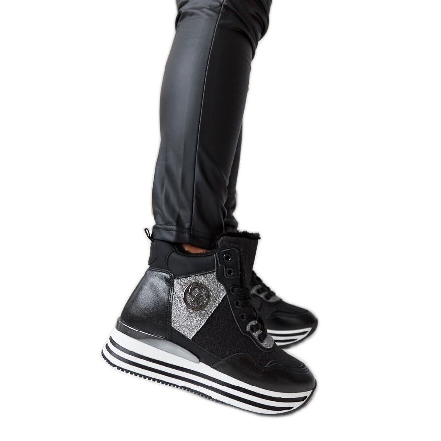 Schwarz isolierte Turnschuhe mit Brokat Deleon - Stil, Komfort und Wärme an kalten Tagen