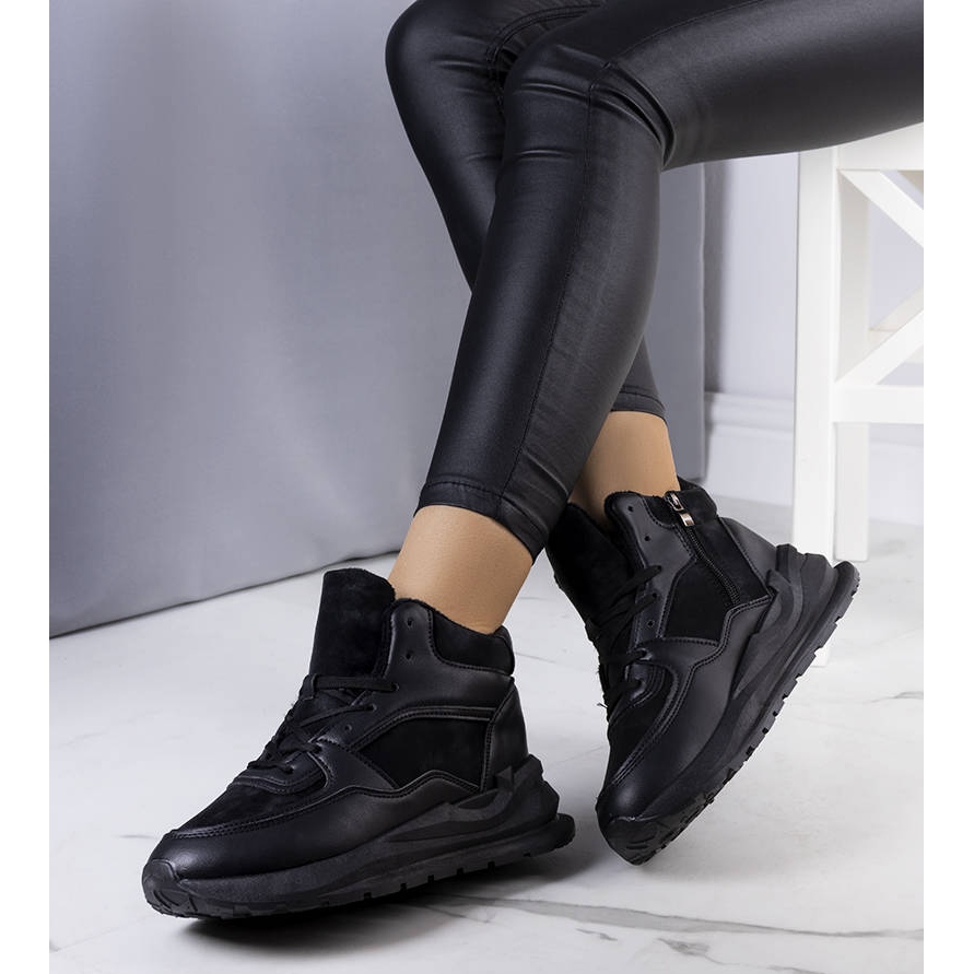Diese vielseitigen Schuhe sehen dank ihrer schwarzen Farbe und der schwarzen Gummisohle, die für hervorragenden Halt sorgt, edel aus. Das Modell A18-1 zeichnet sich durch sein minimalistisches Design, den Verzicht auf zusätzliche Muster und eine runde Spitze aus, wodurch die Sneaker zu nahezu jedem Styling passen.