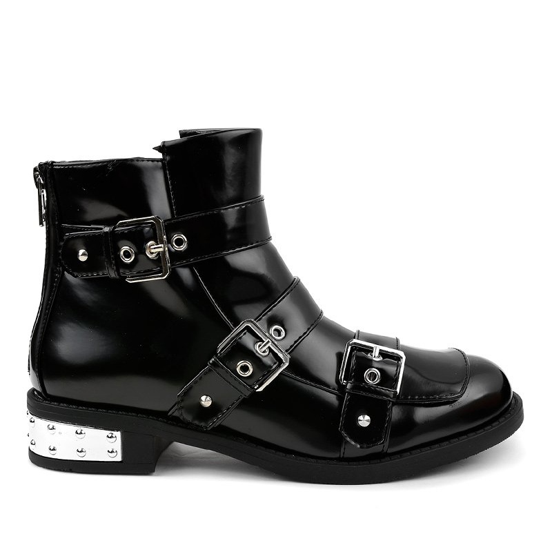 Die aus glänzendem Material in klassischem Schwarz gefertigten A-388-Stiefel fallen mit dekorativen Schnallen und Strasssteinen auf, die ihnen einen modernen Charakter verleihen. Das Obermaterial der Schuhe ist isoliert, was auch an den kältesten Tagen für Wärme und Komfort sorgt. Zusätzlich verfügen die Stiefel über einen seitlichen Reißverschluss, der das An- und Ausziehen der Schuhe erleichtert.