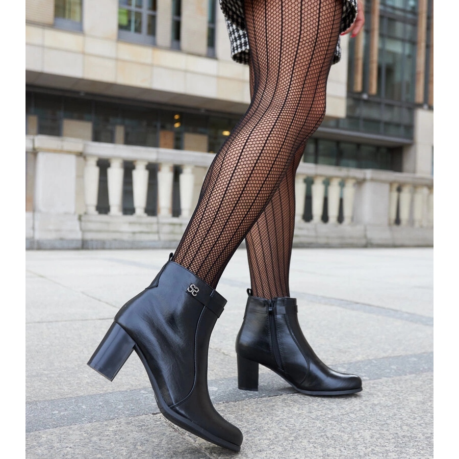 Elegante und praktische - Barreto -Stiefel kombinieren modisches Design mit dem Komfort des Tragens. Das mit subtile Zirkone dekorierte schwarze ökologische Leder -Obermaterial verleiht Schuhe Stil und einen universellen Charakter, der sowohl alltägliche als auch anfängliche Stylisationen passt. Der Mandelzeh und eine stabile Ferse auf einer 6 -cm -Hochsäule bieten einen eleganten Look, ohne den Komfort aufzugeben.