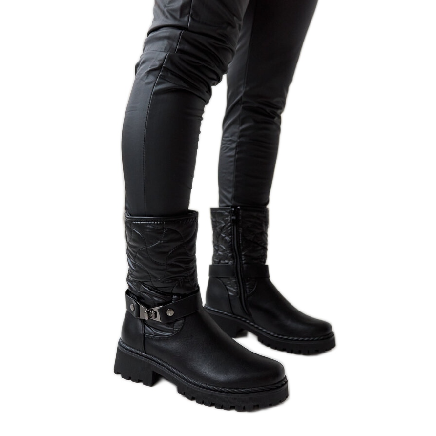 Schwarze isolierte Stiefel mit einem dekorativen Lido-Gürtel-Modell WD-9102