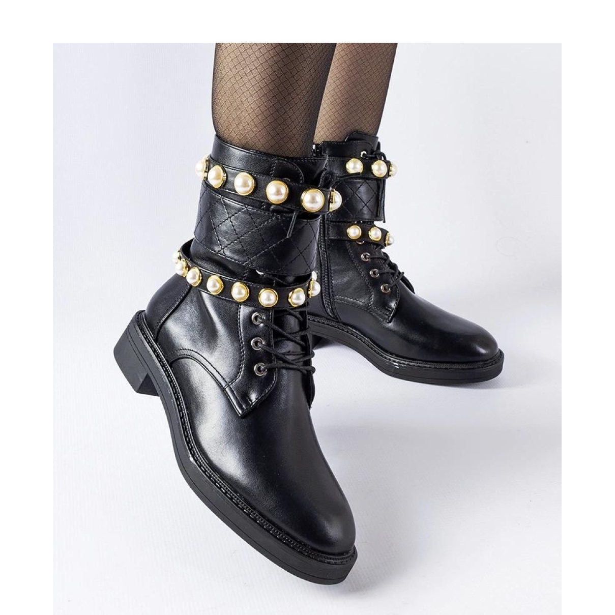 Details: Schwarze, isolierte Stiefeletten mit Normand-Perlen – Solea