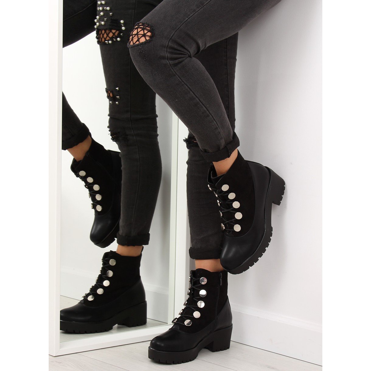 Inna marka Schwarze JD-19 Stiefel mit dicken Sohlen
