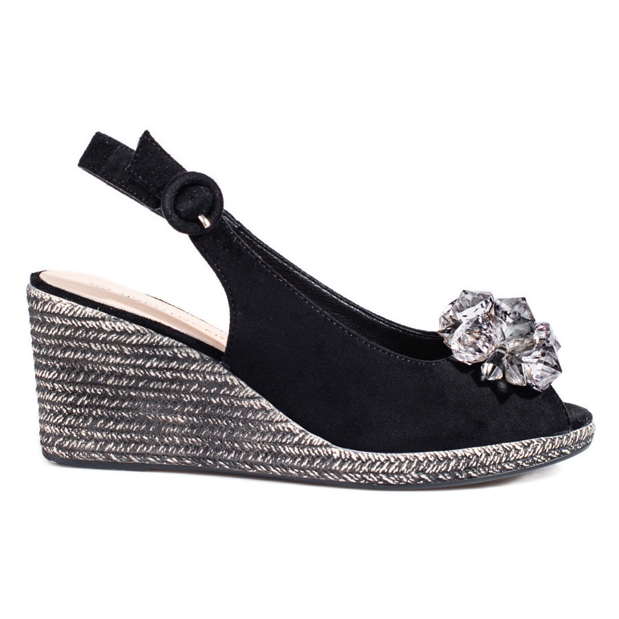 W. Potocki W. Potocki Schwarze Keil-Espadrille-Sandalen für Damen Potocki