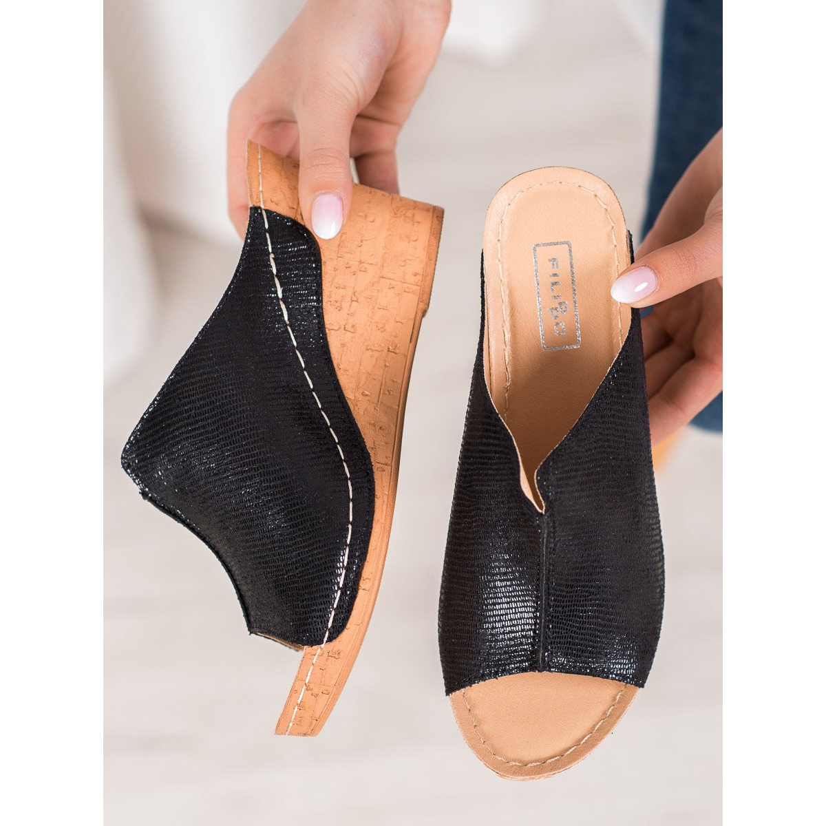 Sie bestehen aus langlebigen Materialien und bieten nicht nur ein attraktives Aussehen, sondern auch Langlebigkeit. Ökologisches Leder auf der Innensohle und eine glatte Gummisohle garantieren stundenlangen Tragekomfort. Die Keilhöhe von 8-10 cm verlängert die Beine optisch, verleiht Eleganz und sorgt gleichzeitig für Stabilität.