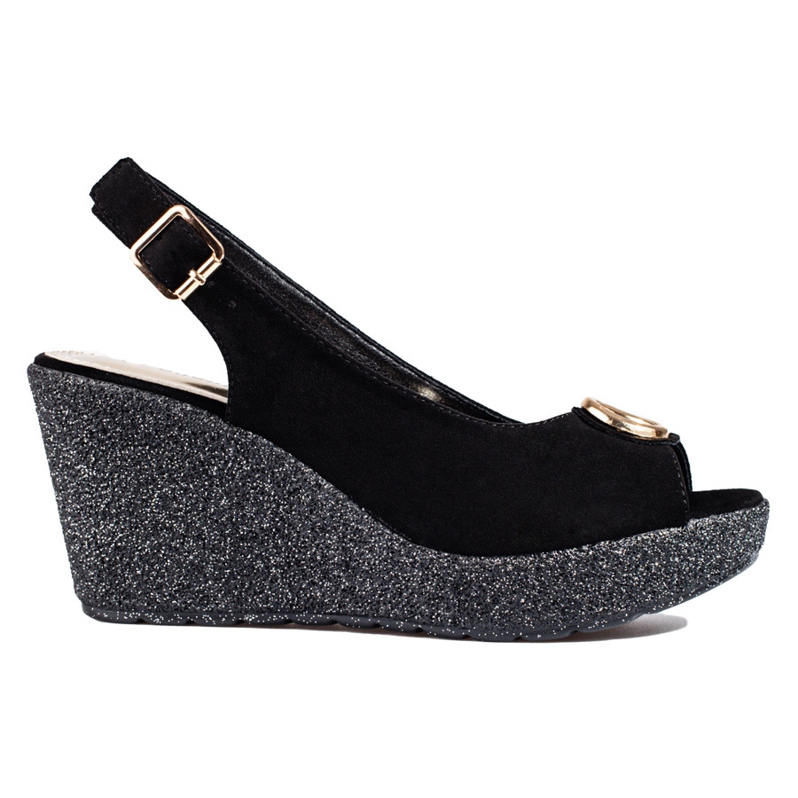 Details: Schwarze Keilsandalen aus Wildleder von Shelovet für Damen