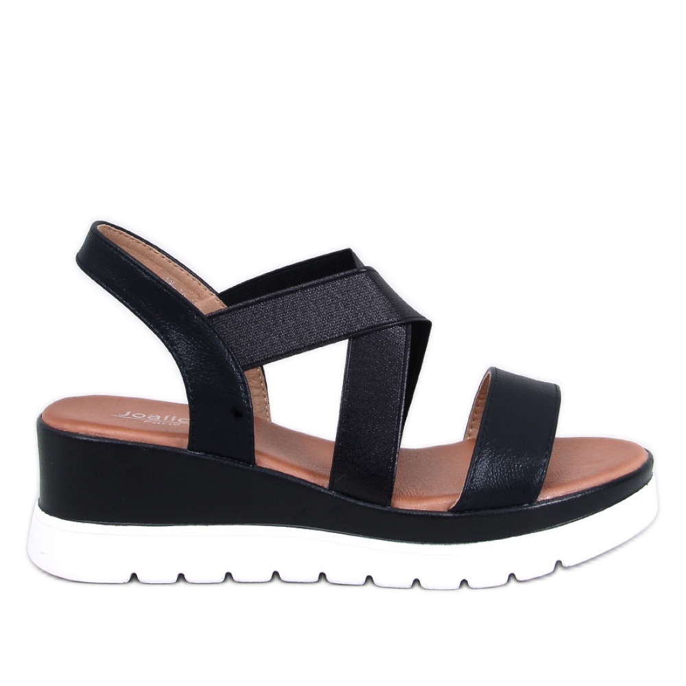 Entdecken Sie die einzigartigen schwarzen Keilsandalen, die Eleganz und Komfort perfekt kombinieren. Diese stilvollen, schwarzen Frauensandalen aus einer anderen Marke sind die perfekte Wahl für Sommertage. Dank der Fersenhöhe von 6 cm und einer 3 cm hohen Plattform können Sie die zusätzliche Höhe genießen, ohne die Bequemlichkeit aufzugeben.