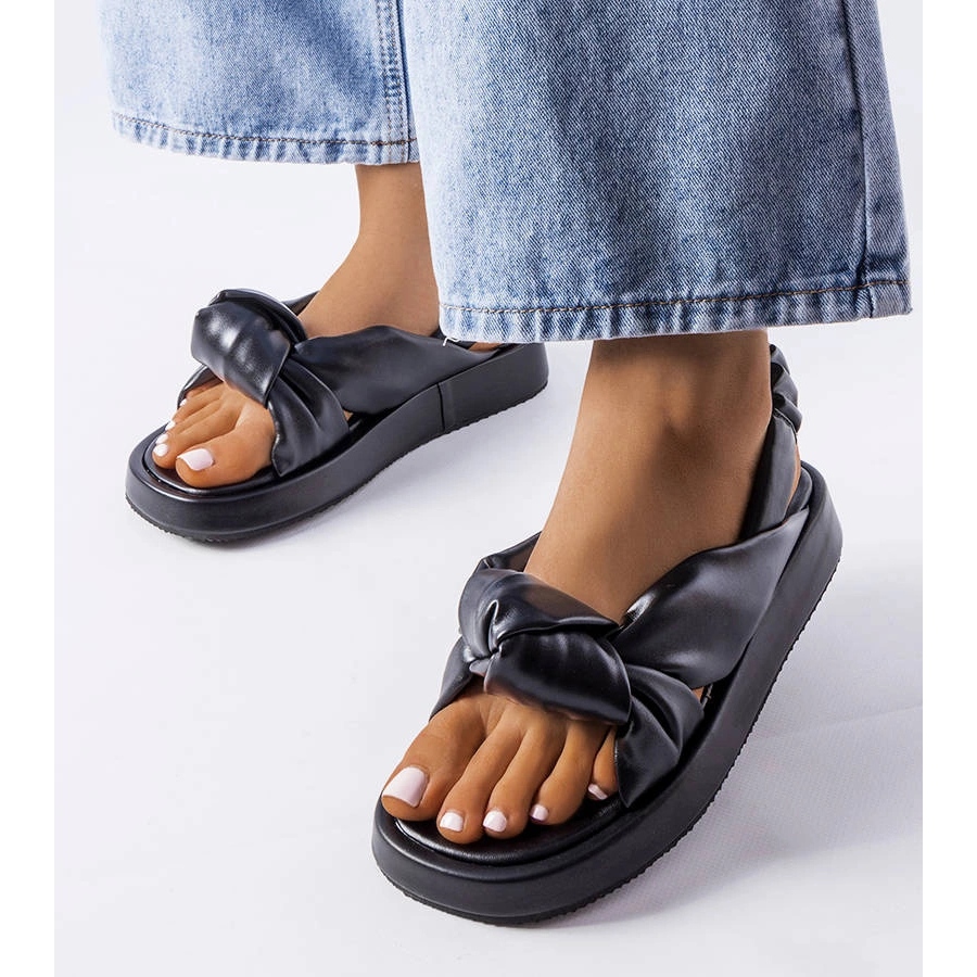 Klassische Black Clarice zehenstegsandalen kombinieren Leichtigkeit und Bequemlichkeit mit subtiler Eleganz. Dank des niedrigen Keils (4 cm) fügen sie eine diskrete Höhe hinzu, die den ganzen Tag über den Nutzungskomfort aufrechterhalten. Perfekt für den Sommer - für die Arbeit, für einen Spaziergang oder ein Treffen mit Freunden.