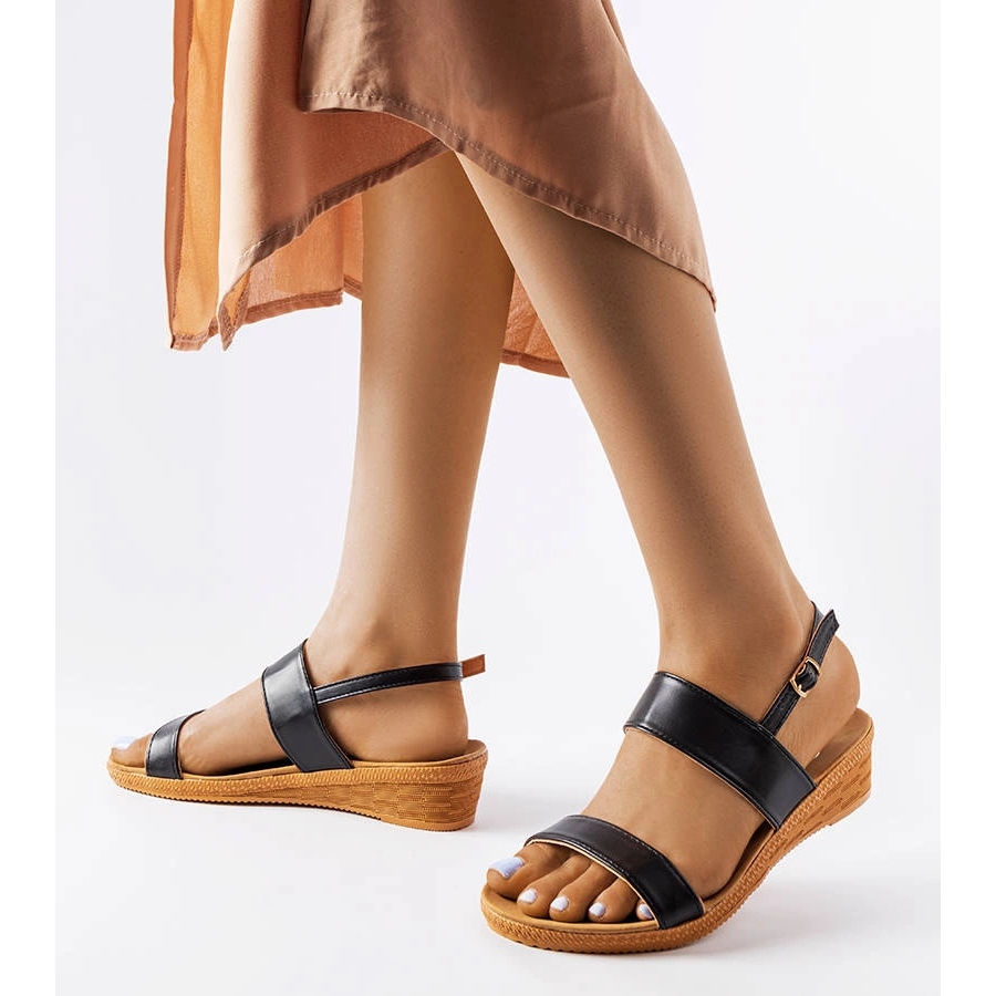 Klassische, komfortable Keilsandalen, perfekt für Sommertage. Eine glatte, elegante Form in einer universellen schwarzen Farbe passt gut zu alltäglichen und eleganteren Stilisierungen. Ein 4 -cm -Hochkeil sorgt dafür, dass Stabilität und sanft angehoben werden, ohne den Komfort aufzugeben.