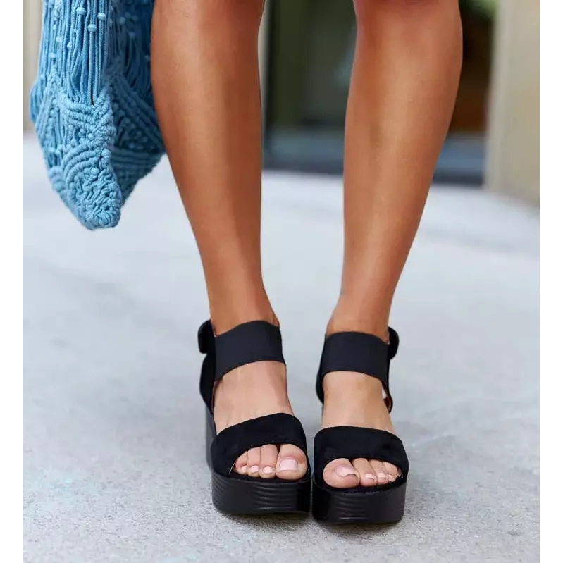 Schwarze Romani-Keilsandalen sind die perfekte Wahl für Frauen, die bequemes Sommerschuhwerk suchen. Ein 8 cm hoher Keilabsatz ist der perfekte Kompromiss zwischen Stil und Komfort, sodass Sie auch lange Strecken bequem zurücklegen können, ohne Angst vor Ermüdung der Beine haben zu müssen.