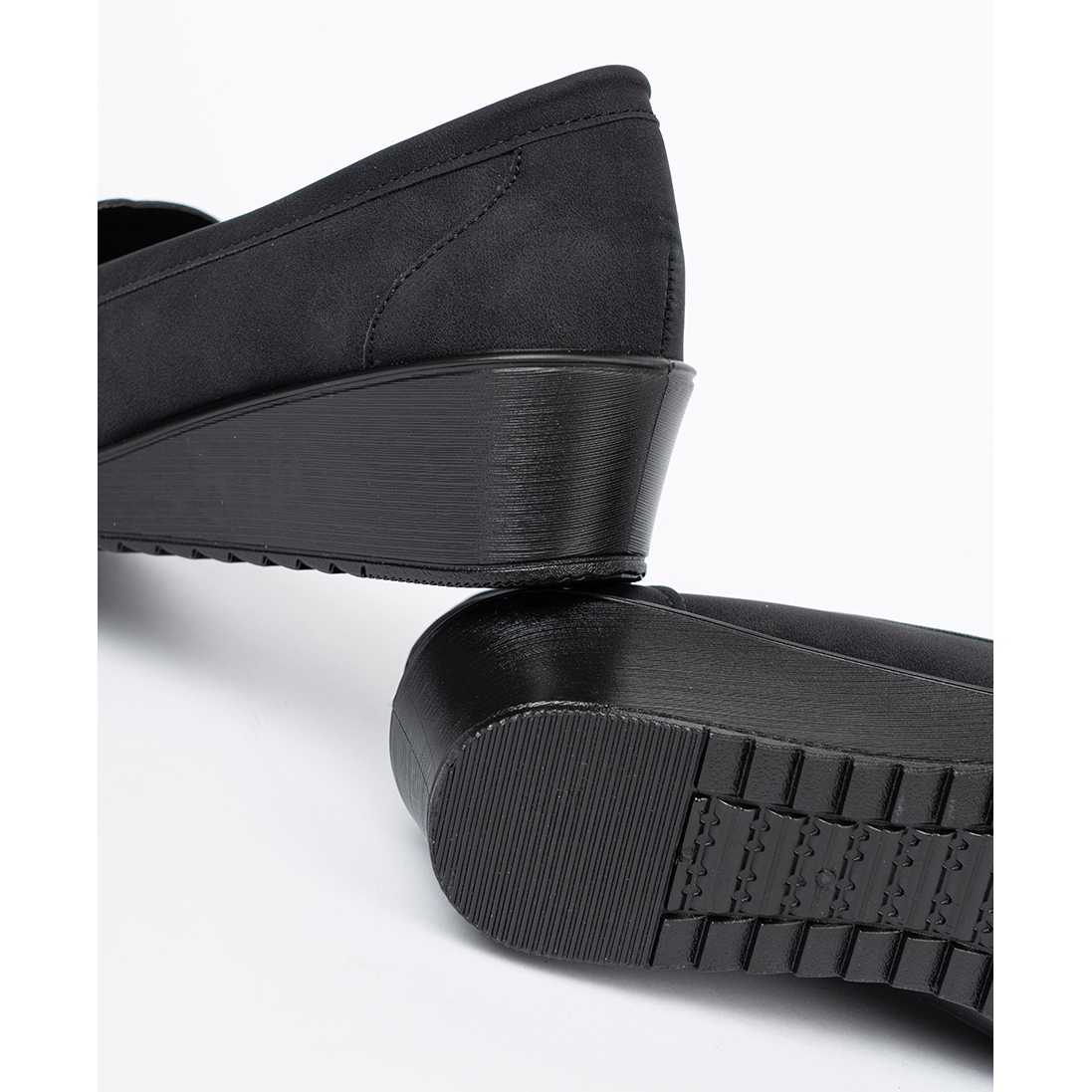 Ein 4 -cm -Hochkeil bietet beim Tragen Komfort und verleiht gleichzeitig der gesamten Figur Leichtigkeit. Verstärkte Ferse bau -Stabilität, die für alltägliche Aktivitäten von entscheidender Bedeutung ist. Eine runde Nase und eine vollständige Art Nase fügen Klassen und Eleganz hinzu, und der eingefügte Verschluss erleichtert das Anlegen und Entfernen von Schuhen.