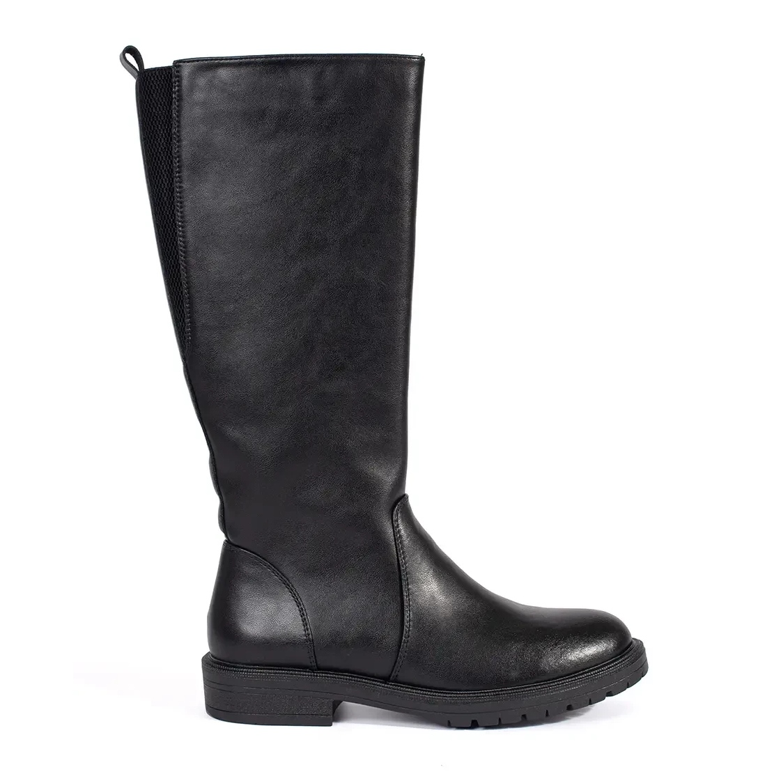 Leder Black Classic Stiefel Frauenstiefel Sergio Leone ist ein idealer Vorschlag für Frauen, die Eleganz mit Komfort schätzen. Diese Stiefel aus natürlichen Leder sehen nicht nur stilvoll aus, sondern sorgen auch für Haltbarkeit und Komfort des Tragens. Dieses Modell zeichnet sich durch eine flache Ferse mit einer Höhe von 3 cm aus, was sie jeden Tag zu einer großartigen Wahl macht.
