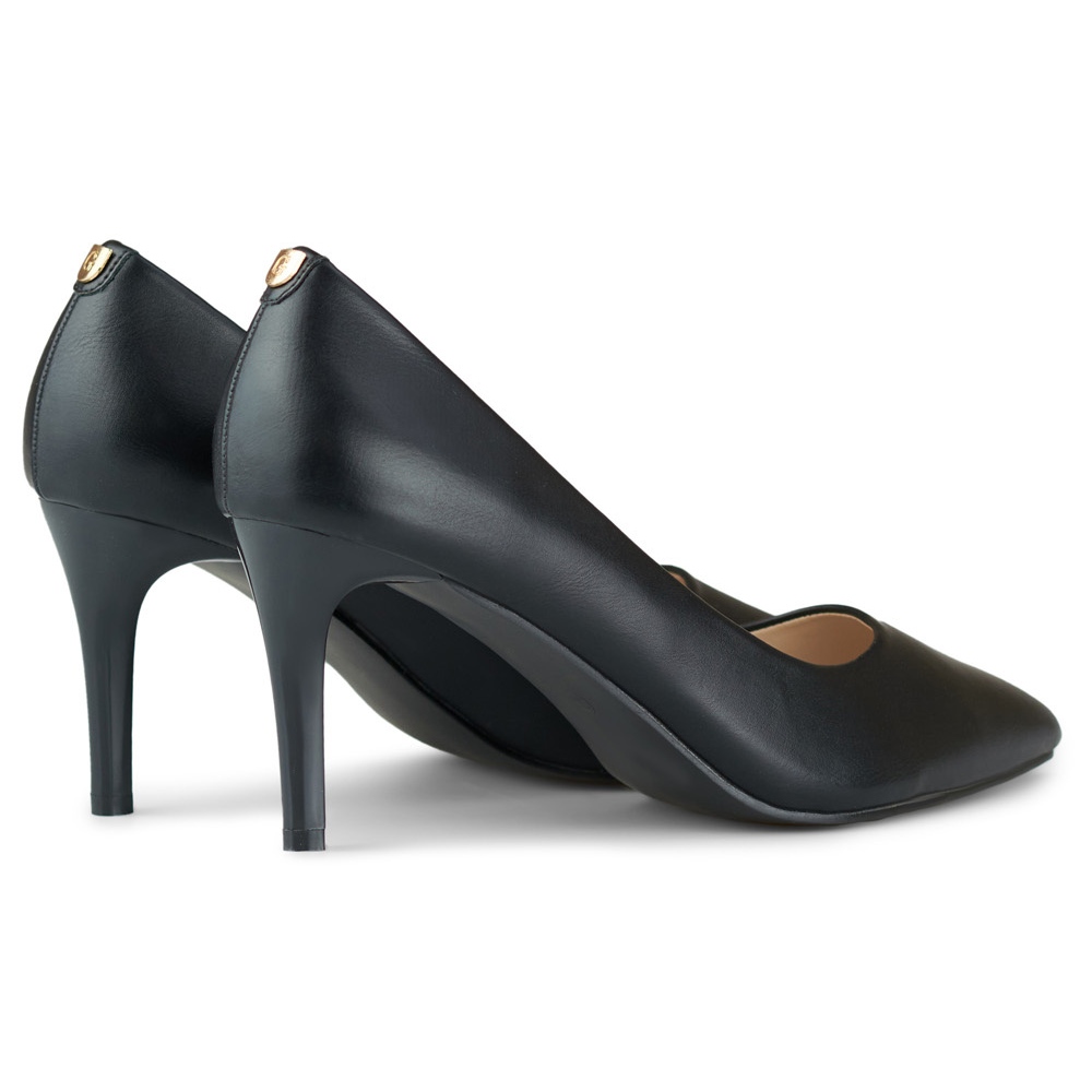 Klassische schwarze Pumpen mit einem Öko -Leder mit einer subtilen, spitzen Nase sind eine zeitlose Wahl für jede Frau, die Eleganz und Komfort schätzt. Slip Struktur und 7,5 cm Pin machen die Schuhe stabil und schlank die Figur - ideal für das Büro, für Besprechungen oder Abendausflüge.