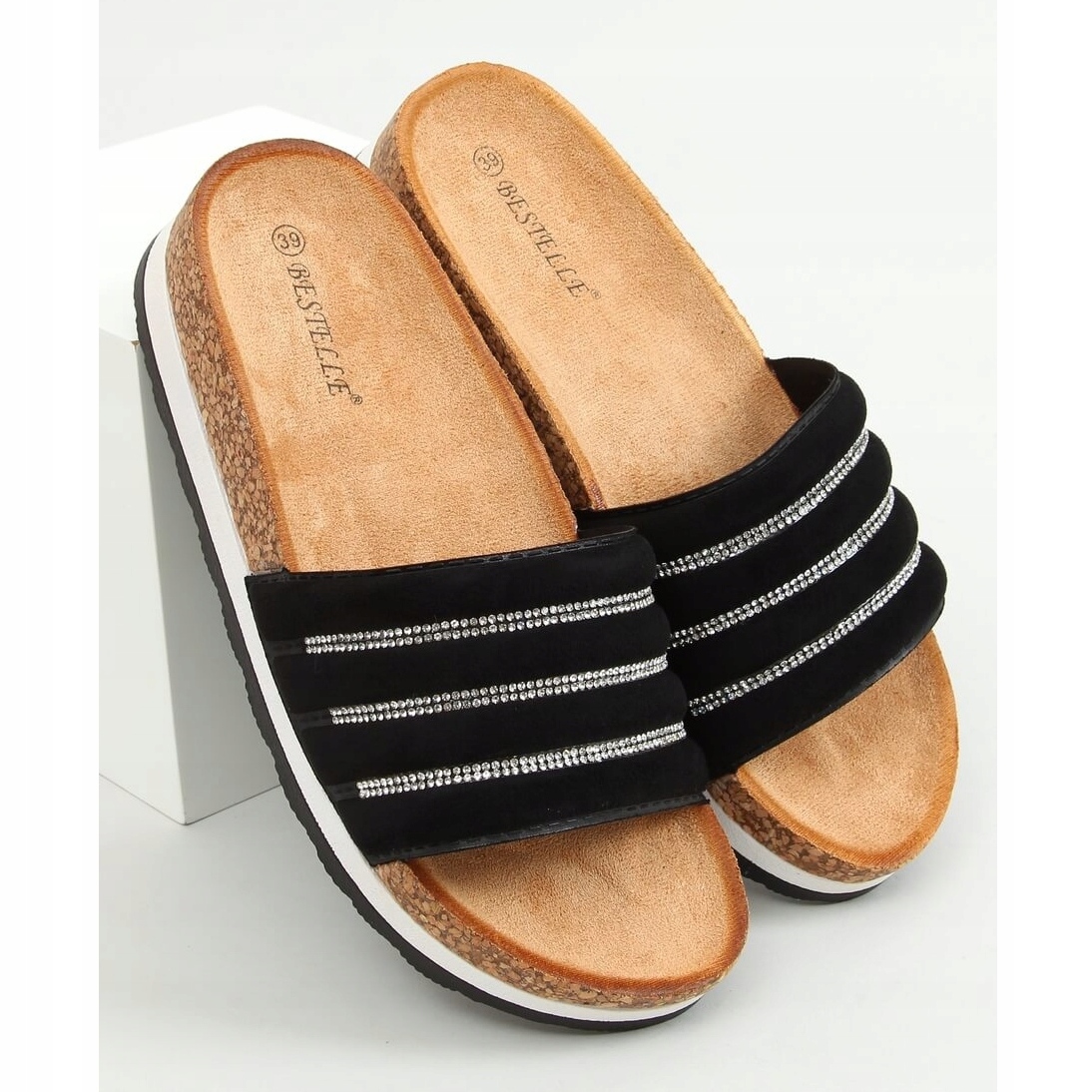 Inna marka Schwarze Kork-Hausschuhe LS018 Schwarz
