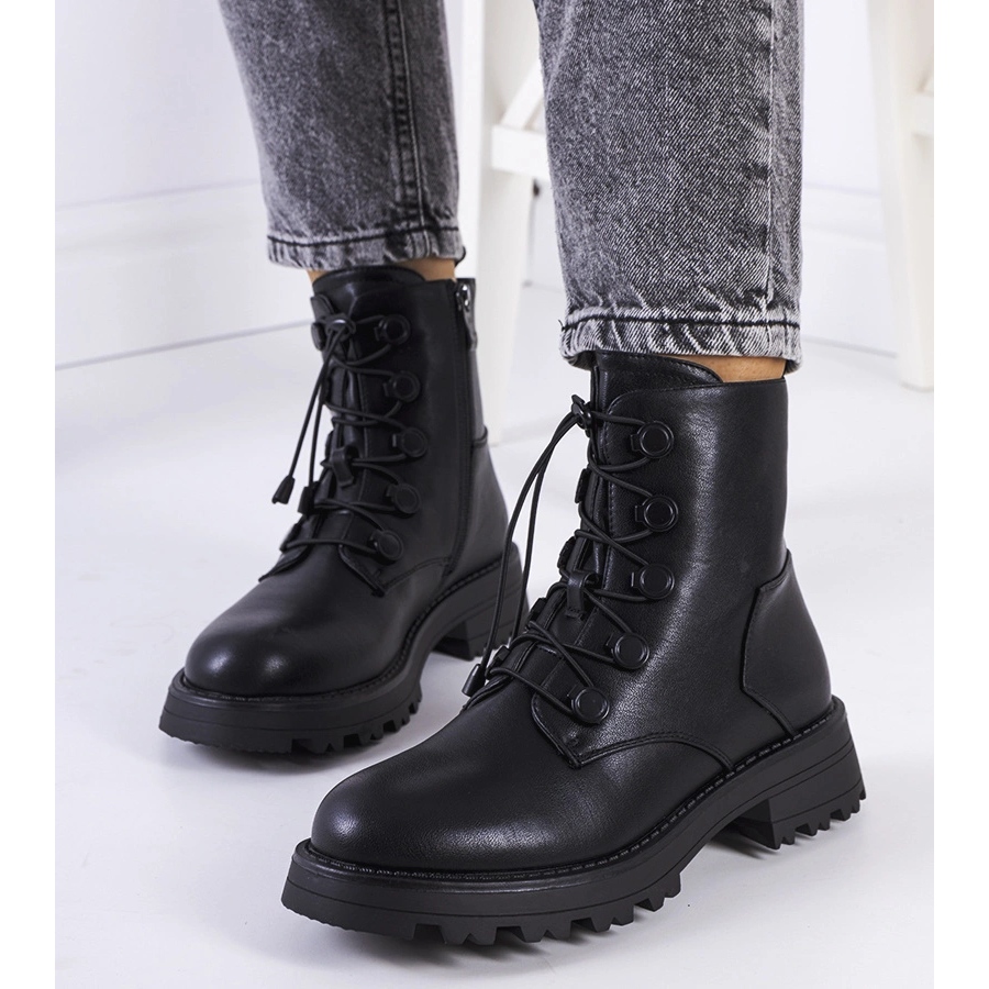 Klassische und modische Stiefel auf einem dicken Beschützer - perfekt für die Herbst/Winter -Saison. Hergestellt aus haltbarem ökologischem Leder, im Inneren leicht isoliert, mit einer bequemen, runden Nase. Dank der flachen Plattform mit einer Höhe von 4,5 cm und einer plastischen Plastiksohle gewährleisten sie während des täglichen Verschleißes Stabilität und Komfort.