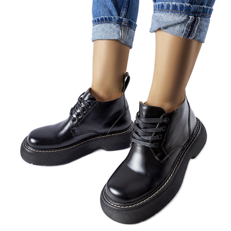 Die Schuhe haben eine runde Spitze und sind geschnürt, wodurch sie sich perfekt an den Fuß anpassen und maximalen Tragekomfort gewährleisten. Aus hochwertigem ökologischem Leder und Gummi gefertigt, sind die Arbeiter sowohl langlebig als auch ästhetisch. Durch die schwarze, glatte Oberfläche eignen sie sich für viele verschiedene Kombinationen – von lässig bis elegant.