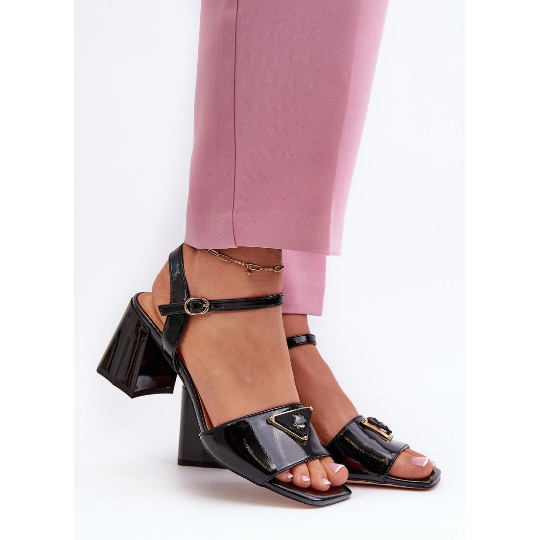 Details: S.Barski Schwarze Lack-Sandalen mit Absatz