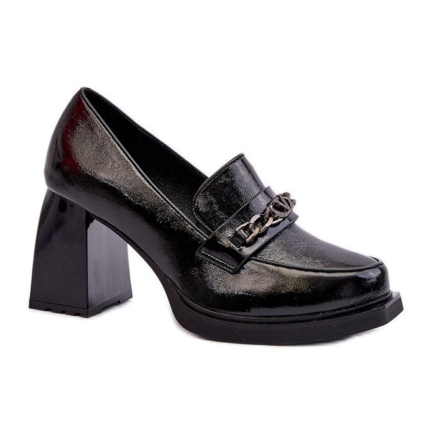 Ein zusätzlicher Vorteil dieses Modells ist ein dekorativer Streifen mit einer Kette, die den Pumpen ein modernes Aussehen verleiht. Unabhängig davon, ob Sie ein elegantes Abendessen oder eine tägliche Reise in die Stadt planen, ergänzen schwarze Pumpen jede Stiftung perfekt.