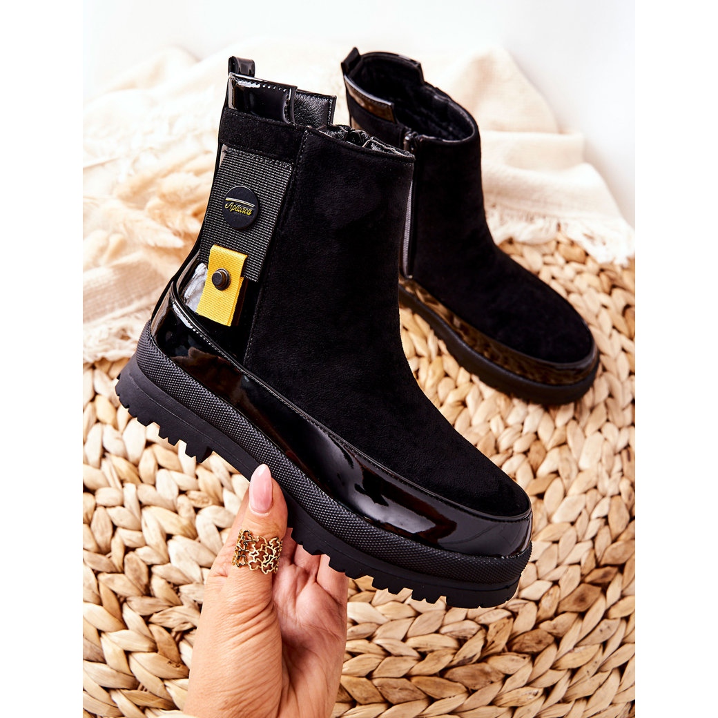 Das Obermaterial der Schuhe besteht aus hochwertigem ökologischem Lackleder und Wildlederimitat, was ihnen ein äußerst stilvolles Aussehen verleiht. Schwarze Stiefeletten passen perfekt zu einer Vielzahl von Stilen, von lässig bis elegant, und verleihen jedem Outfit einen Hauch von Chic.