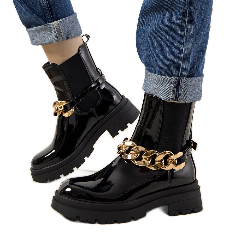 Inna marka Schwarze Lackstiefelette mit Tapia-Kette