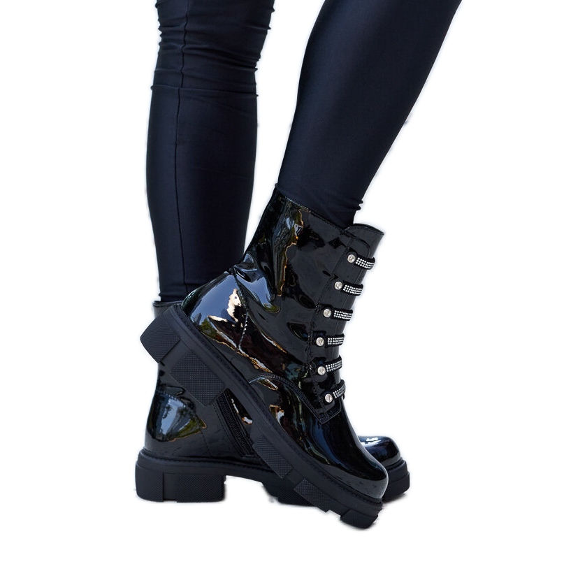 Inna marka Schwarze Lackstiefeletten mit Sfaranda-Strasssteinen