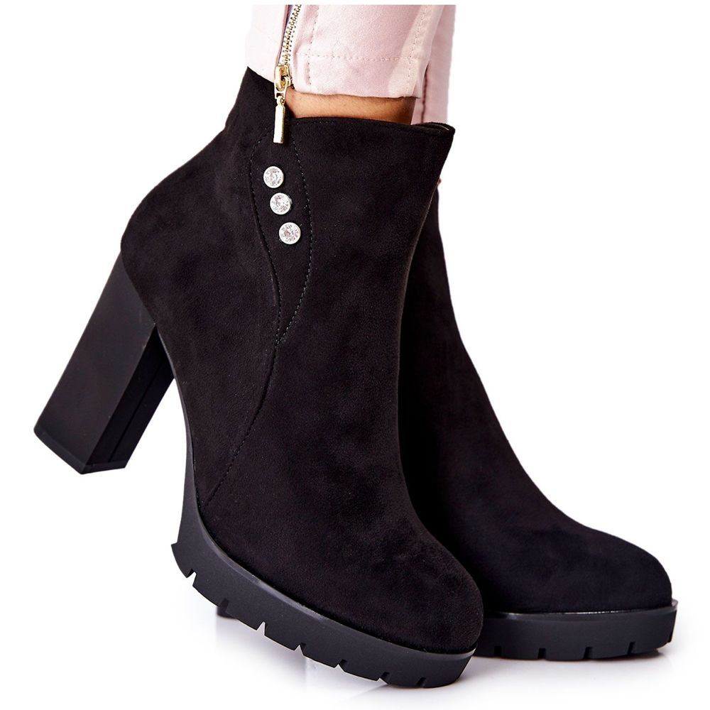 Die Stiefel sind mit einem stabilen 9,5 cm hohen Pfosten ausgestattet, der nicht nur für mehr Höhe sorgt, sondern auch für Tragekomfort sorgt. Darüber hinaus verleiht ihnen der 11 Zentimeter hohe Schaft in Kombination mit dekorativen Zirkonen an der Seite einen einzigartigen Charakter. Dank des Reißverschlusses gelingt das An- und Ausziehen der Schuhe schnell und bequem.