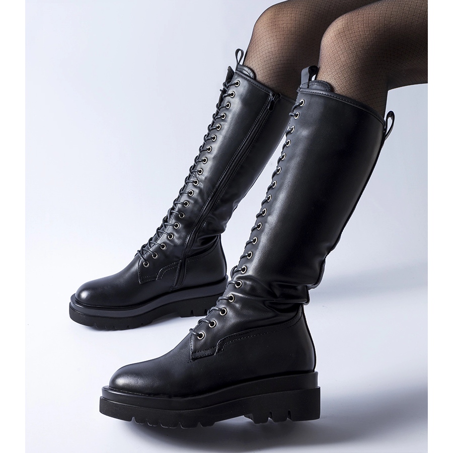 Die Designer achteten auch auf die elegante Optik der Arbeiterschuhe, die durch die runde Spitze und den flachen Absatz deutlich wird und ihnen klassische Eleganz verleiht. Der kniehohe Schaft schützt neben seinen offensichtlichen ästhetischen Werten auch vor Kälte.