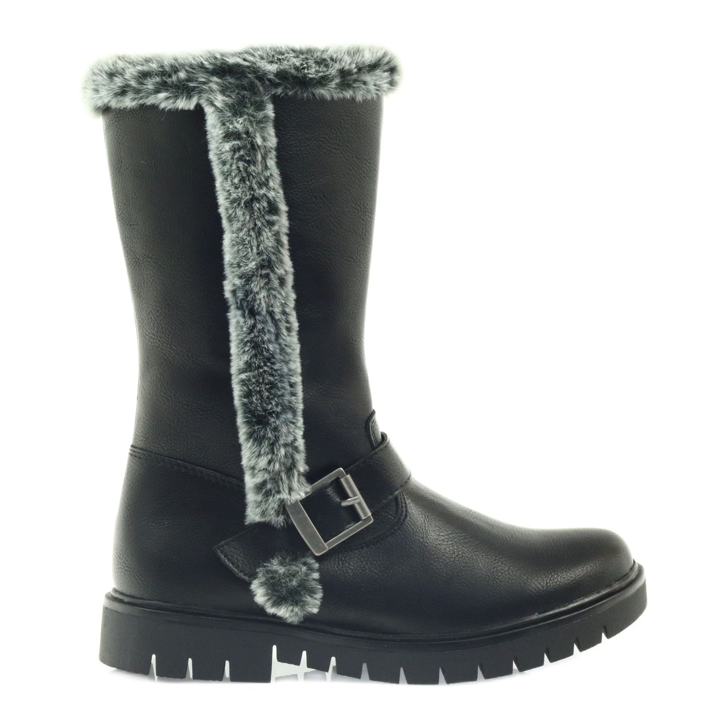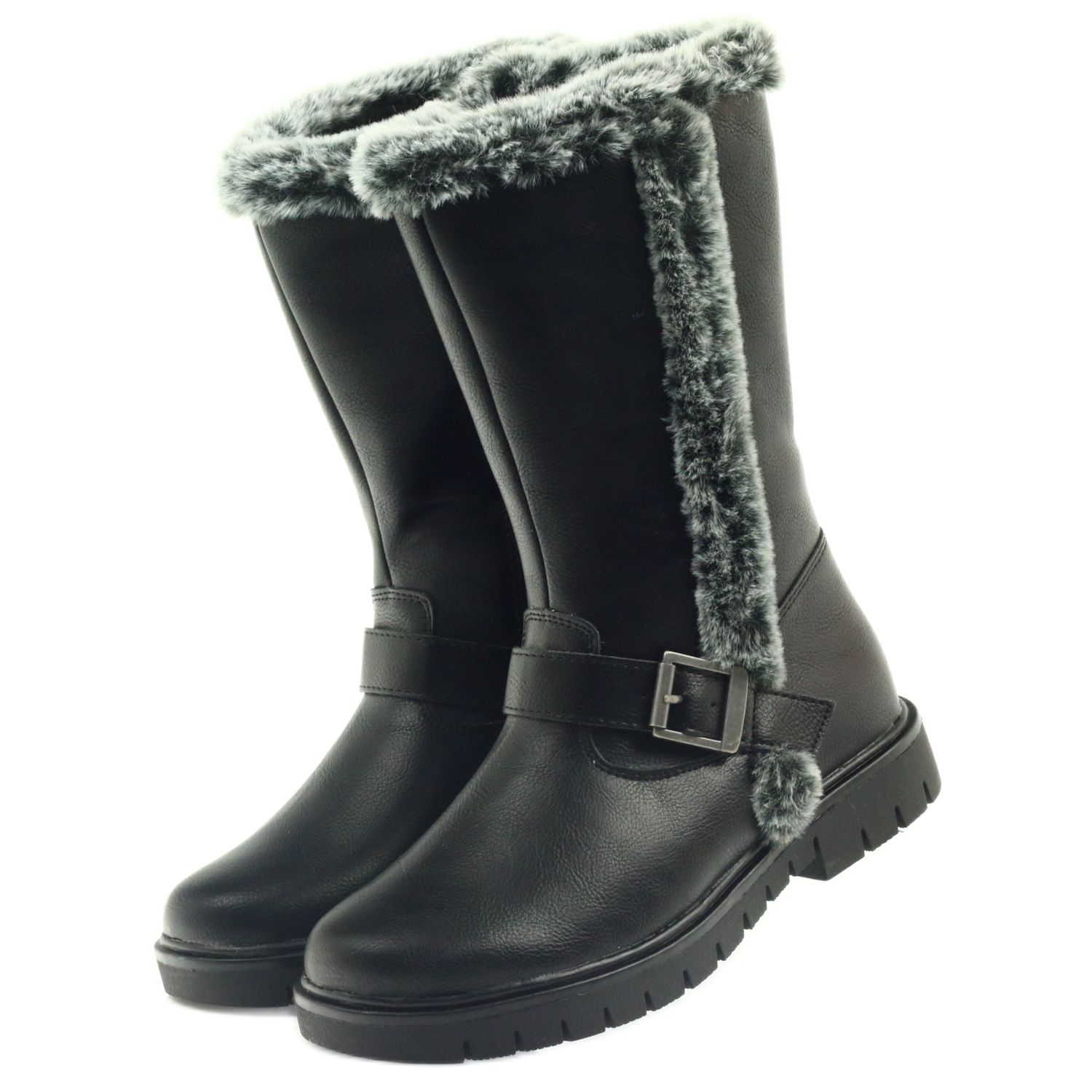 Die langen Stiefel mit Fell von American Club, Modell 16058, in Schwarz sind die perfekte Wahl für modebewusste Mädchen, die Wert auf Komfort und Stil legen. Diese eleganten Schuhe sind aus hochwertigem ökologischem Leder gefertigt, was sie nicht nur ästhetisch, sondern auch umweltfreundlich macht.