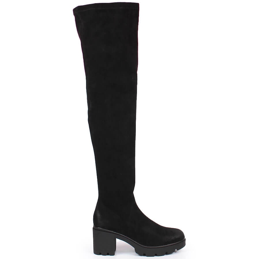 Details: Schwarze Laura La.Fi Stiefel am Pfosten und Plateau über dem Knie