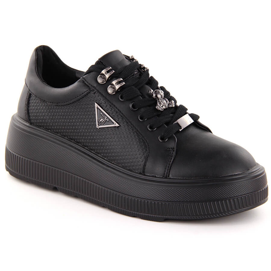Das Modell zeichnet sich durch eine klassische schwarze Farbe aus, die perfekt zu verschiedenen Stylisationen passt, die sowohl lässig als auch eleganter sind. Das obere Leder -Obermaterial mit hoher Qualität ist extrem einfach zu versorgen, und die 4 cm dicke Plattform und die 6 -cm -High Heel sorgen beim Gehen Stabilität und Komfort.