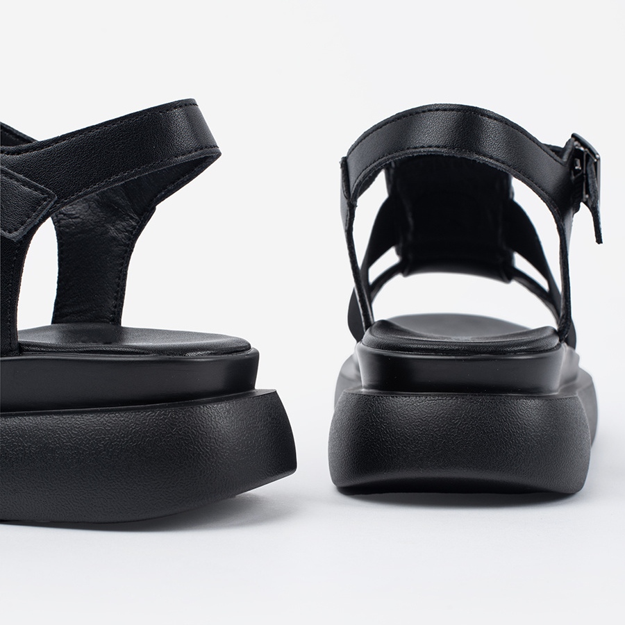 Entdecken Sie etwas Besonderes für Sommertage mit schwarzen Goodin -Sandalen. Diese eleganten Ledersandalen auf der Plattform sind die perfekte Kombination aus Stil, Komfort und Funktionalitäten, die Ihre einzigartige Stylisierung durchführen.