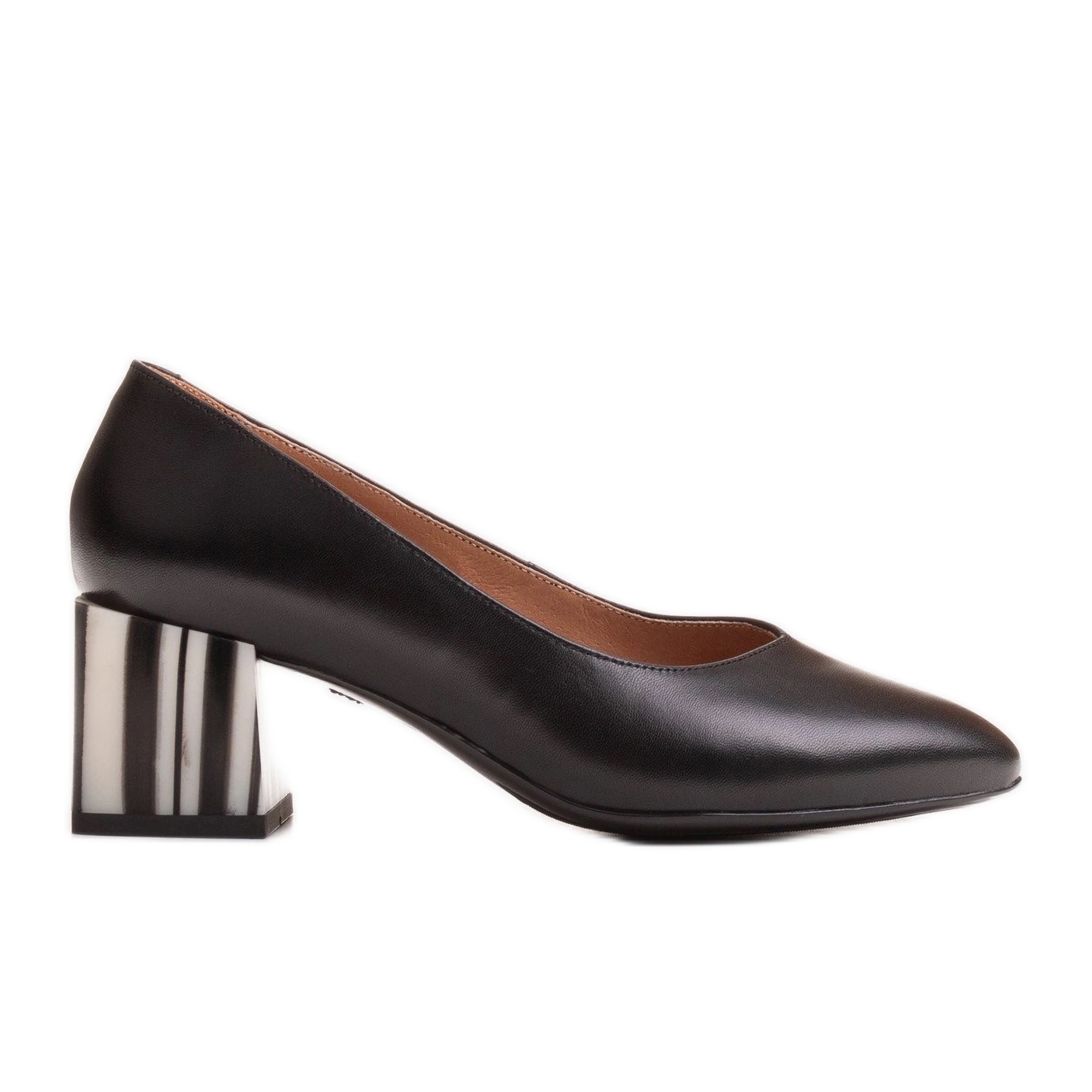 Marco Shoes Marco Shoes Schwarze Lederpumps mit Zebrastreifenabsatz