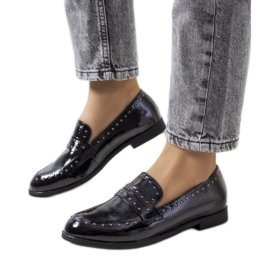 Entdecken Sie die einzigartige Eleganz und das modische Design der schwarzen Lederschuhe mit Rozerin-Nieten, die zu einer perfekten Ergänzung zu jedem Styling werden. Diese Schuhe aus hochwertigem ökologischem Lackleder begeistern nicht nur durch ihr Aussehen, sondern bieten dank der Innensohle aus Naturleder auch einen beispiellosen Tragekomfort.