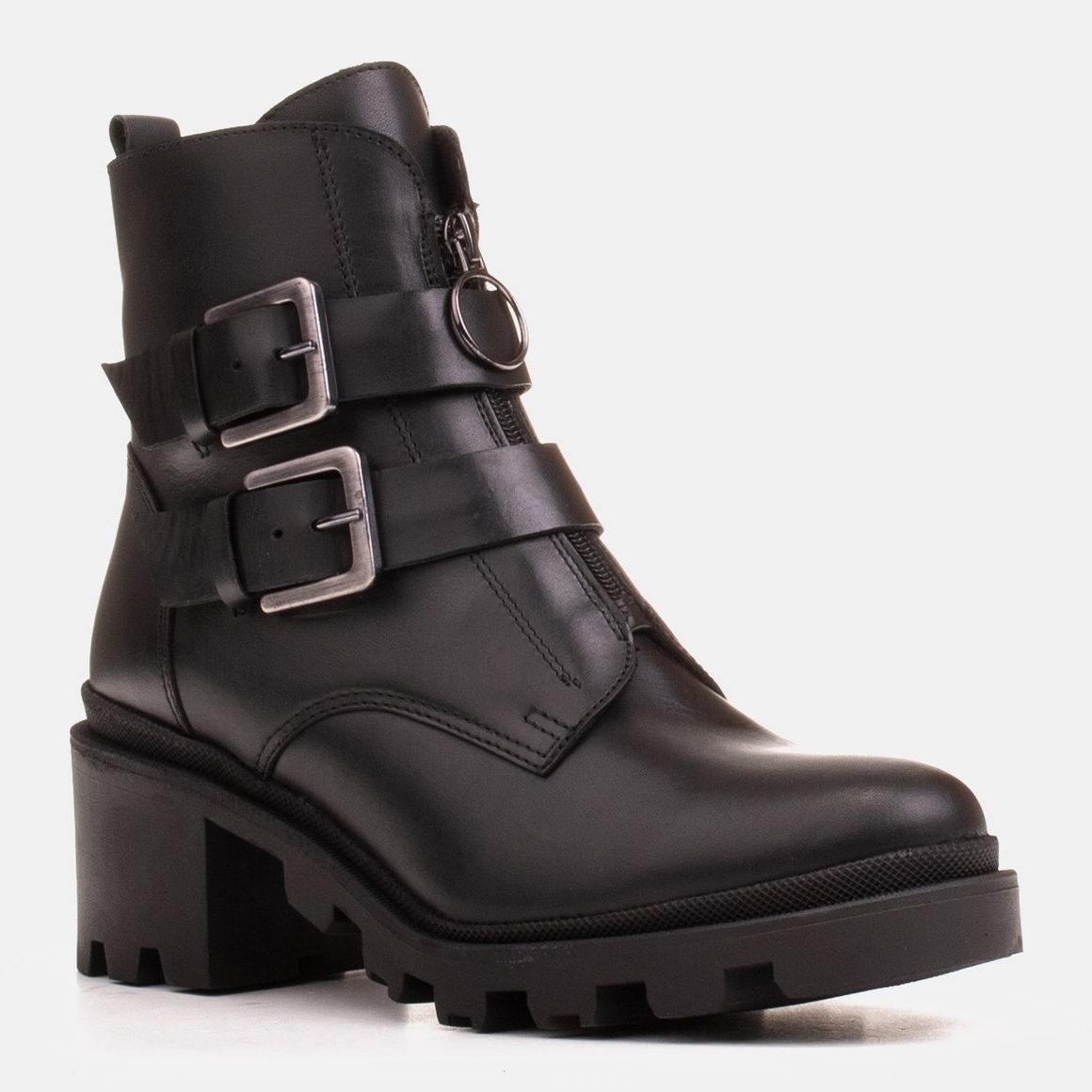 Marco Shoes Marco Shoes Schwarze Lederstiefeletten mit dicker und leichter Sohle