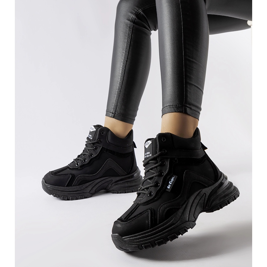 Die schwarzen Stiefel Lee Cooper LCJ-23-44-1976L sind das perfekte Schuhwerk für Frauen, die an Wintertagen Komfort mit einem modischen Look kombinieren möchten. Diese stylischen Stiefel zeichnen sich durch eine praktische, runde Spitze aus, die für angenehmen Tragekomfort und ausreichenden Schutz vor kalter Luft sorgt. Dank des Schnürverschlusses können Benutzer sie einfach an ihre Füße anpassen, was eine noch bessere Passform garantiert.