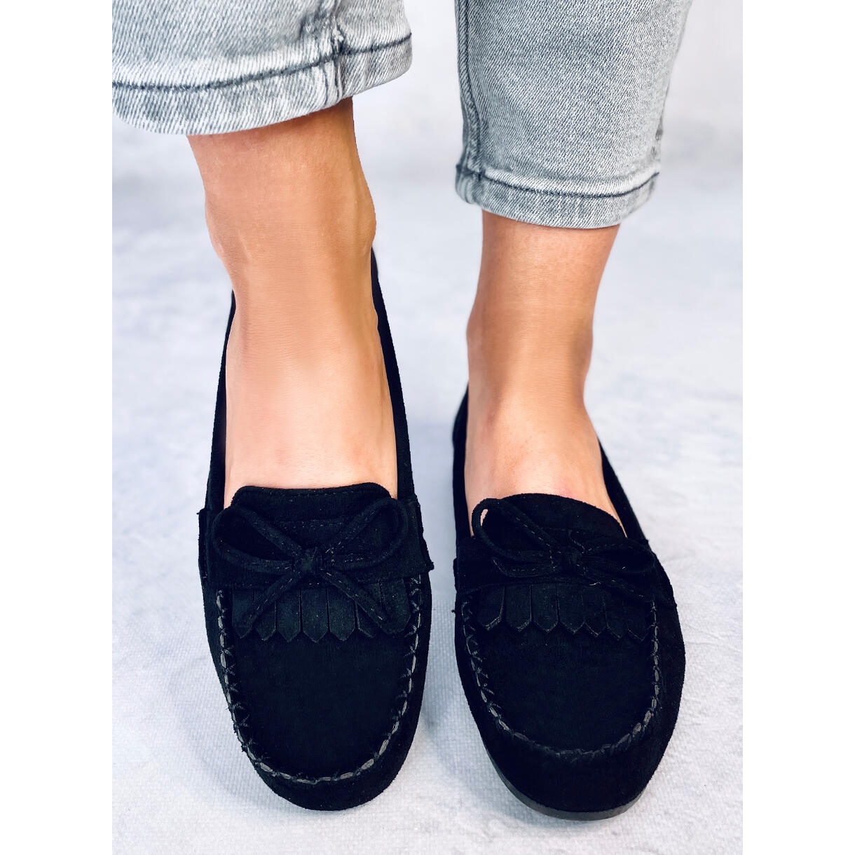 Elegante und komfortable Quest -schwarze Slipper sind jeden Tag die perfekte Wahl. Der klassische Schnitt mit dekorativen Bogen und subtilen Fransen ergänzt sich perfekt und halbformale Stylisationen, und der weiche Einsatz mit Kissen bietet den ganzen Tag über Komfort.