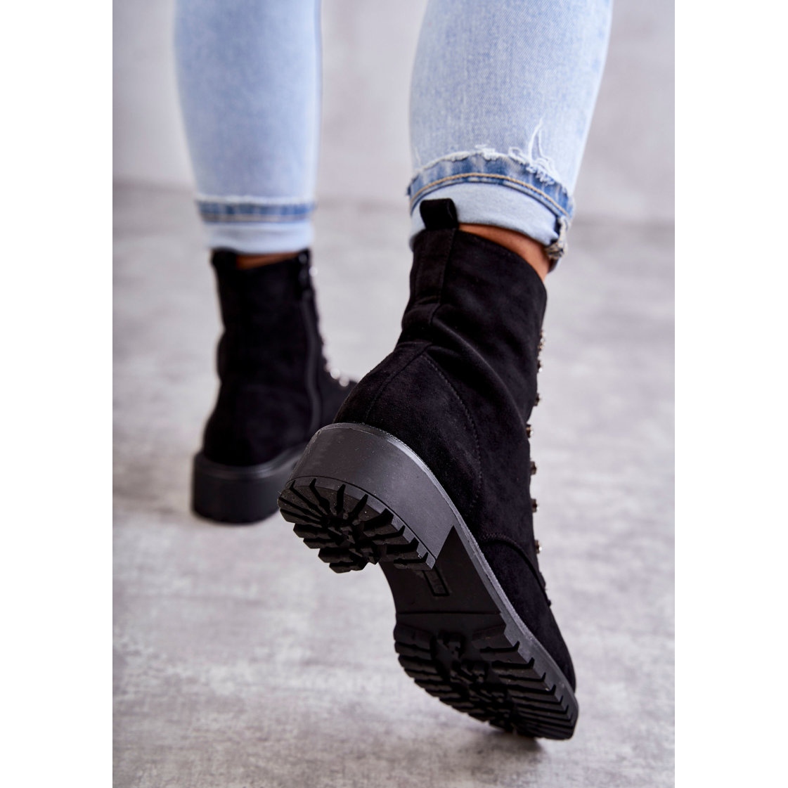 Wir präsentieren elegante und stilvolle Damenstiefel PG1, die durch ihr einzigartiges Design und Tragekomfort begeistern. Aus hochwertigem Öko-Wildleder gefertigt, sind diese schwarzen Stiefeletten die perfekte Ergänzung zu jedem modischen Outfit.