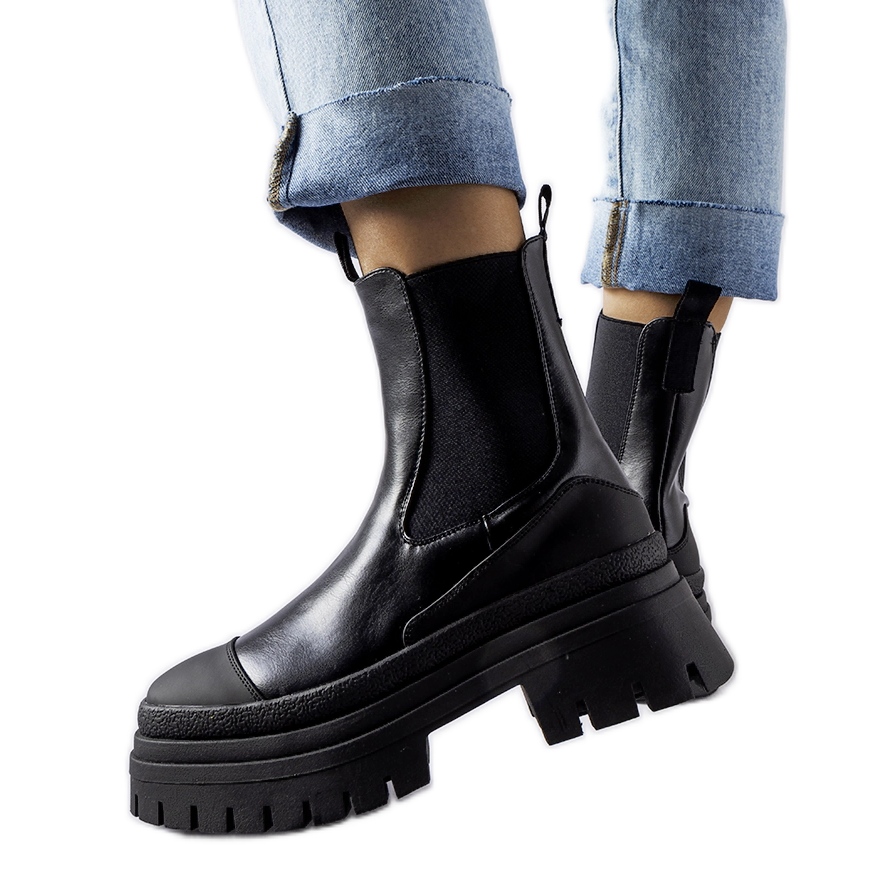 Details: Schwarze, massive Slip-On-Stiefeletten von Wexford