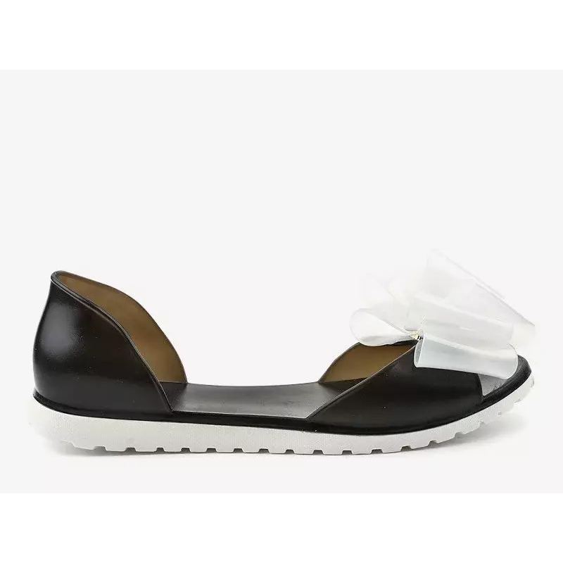 Entdecken Sie Eleganz und Komfort in den schwarzen Meliska S5-3-Sandalen, die die perfekte Wahl für jeden Anlass sind. Diese stilvollen Damenschuhe zeichnen sich durch ihr modernes Design und einen originellen Akzent in Form einer großen weißen Schleife mit goldenem Clip aus, die Aufmerksamkeit erregt und Charme verleiht.