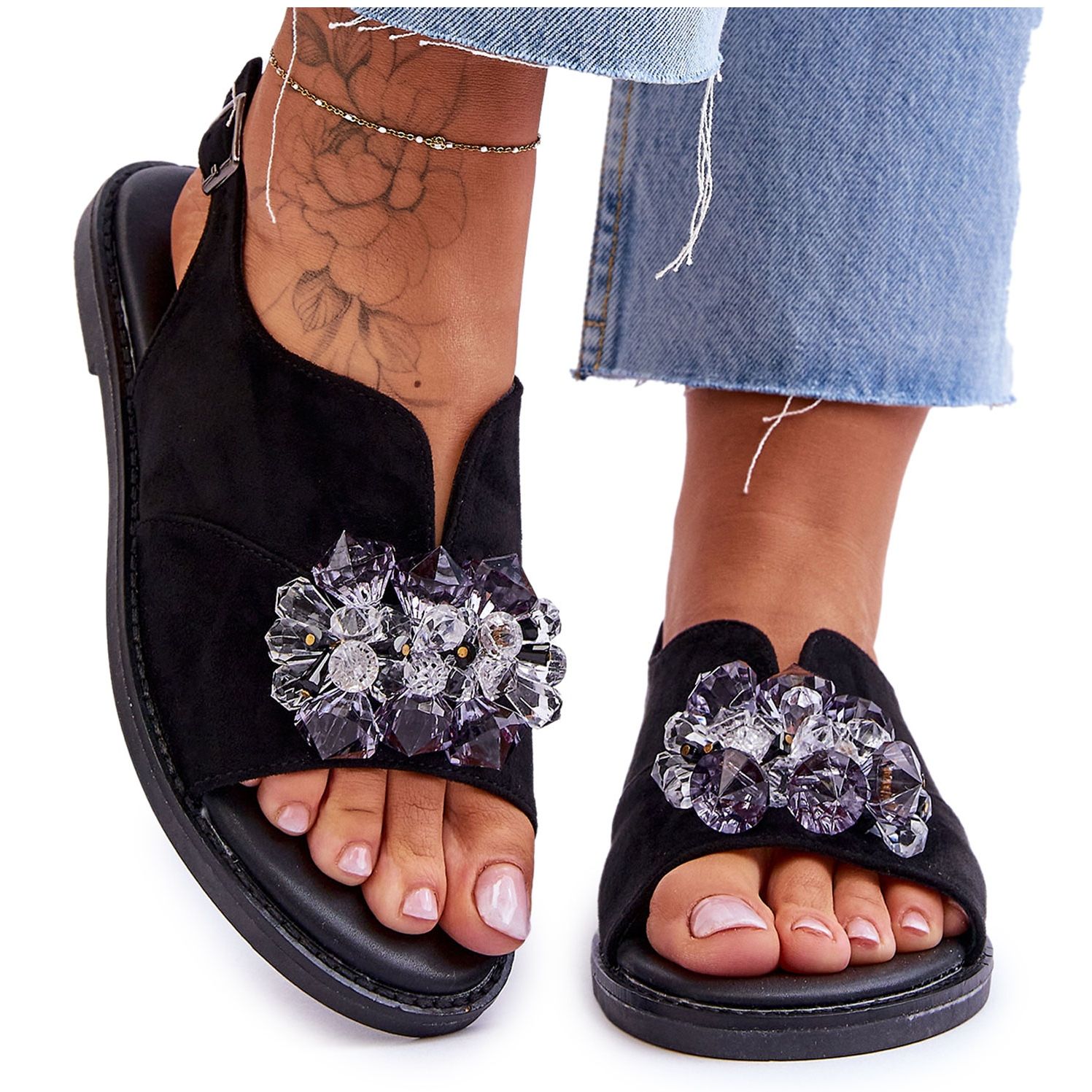 Die Vinceza Damen-Sandalen aus Wildleder mit Steinen in Black Mersea sind auf der Vorderseite mit Kunststoffsteinen verziert, die effektvoll Diamanten imitieren, und werden mit Sicherheit die Aufmerksamkeit auf sich ziehen und Ihrem Sommer-Styling Glanz verleihen. Das luftige Design der Sandalen eignet sich sowohl für Strandspaziergänge als auch für Abendausflüge.
