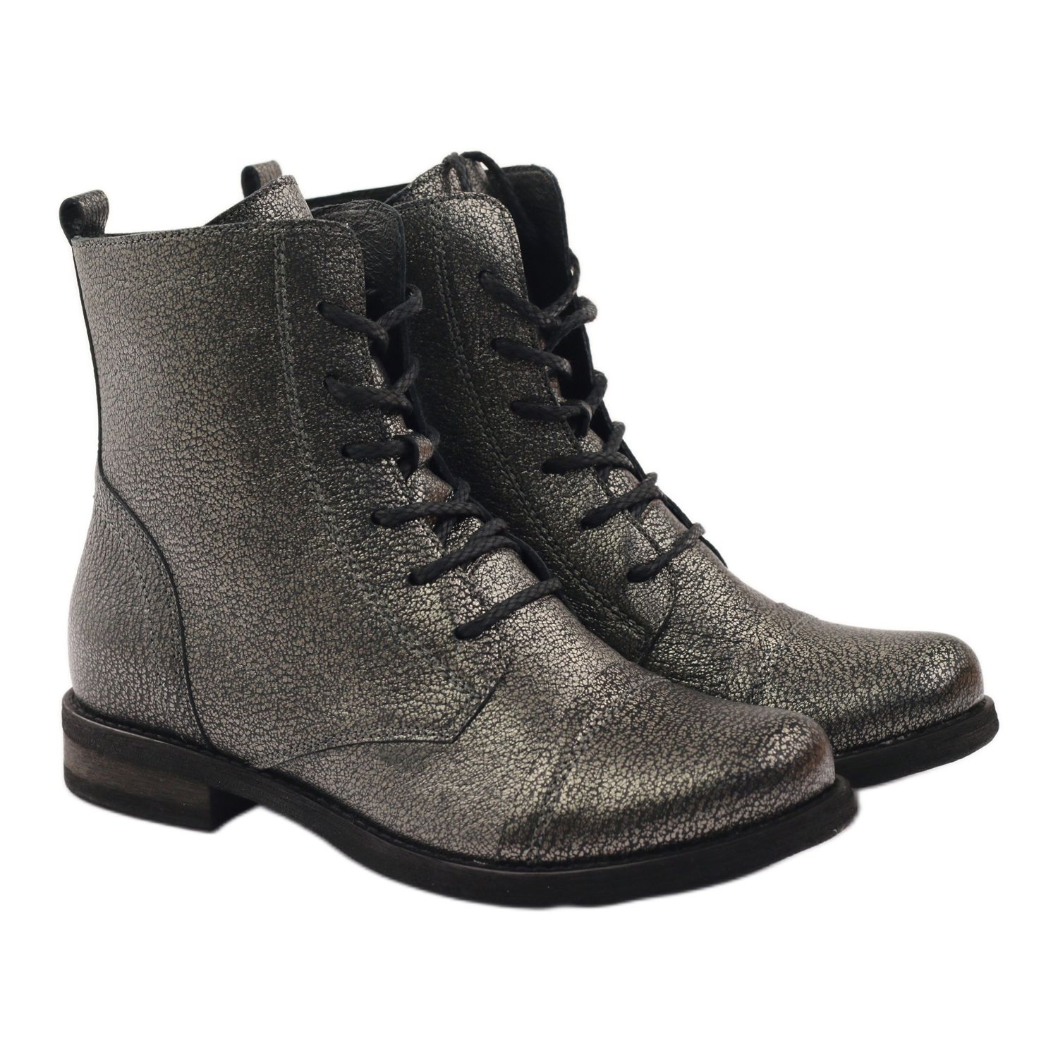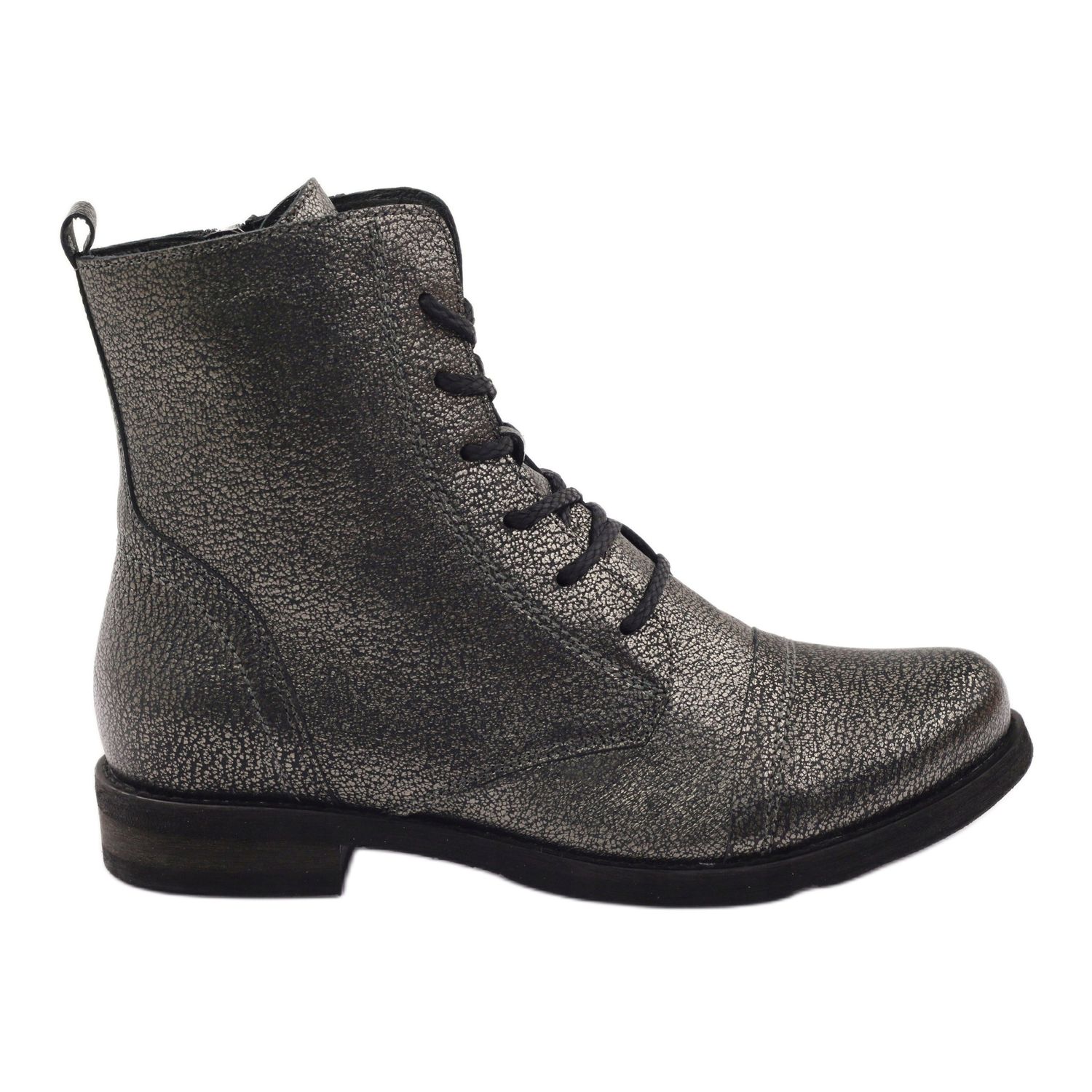 Stilvolle und bequeme Stiefel der polnischen Marke Edeo, komplett aus natürlich genarbtem Leder in einem eleganten Schwarz-Metallic-Ton gefertigt. Das Modell 1799 ist ein Angebot für Frauen, die starkes, originelles Schuhwerk für kältere Tage suchen – mit Fleece-Isolierung, stabiler Sohle und praktischen Befestigungslösungen.