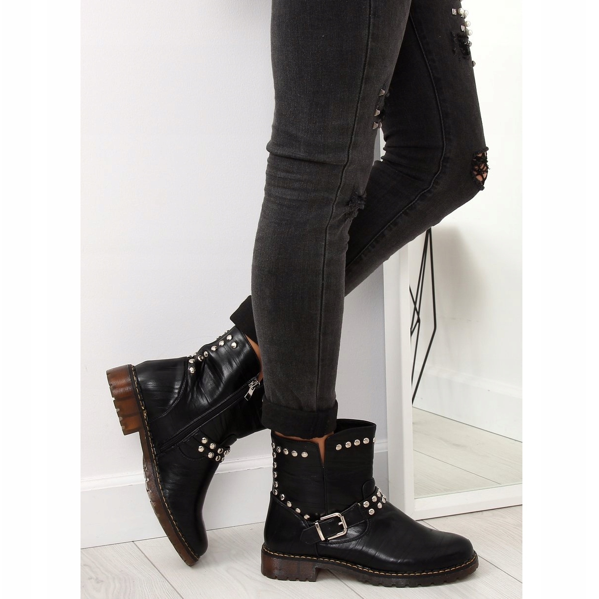 Entdecken Sie Ihre neuen Lieblings-Militärstiefel A-30 Black – die perfekte Kombination aus Stil und Komfort! Diese auffälligen flachen Damenstiefel ziehen mit originellen Zierelementen wie Nieten und sorgfältig gearbeiteten Nähten entlang der Sohle alle Blicke auf sich. Dank ihnen erhält jedes Styling einen einzigartigen Charakter und Sie werden sich mit Sicherheit von der Masse abheben.