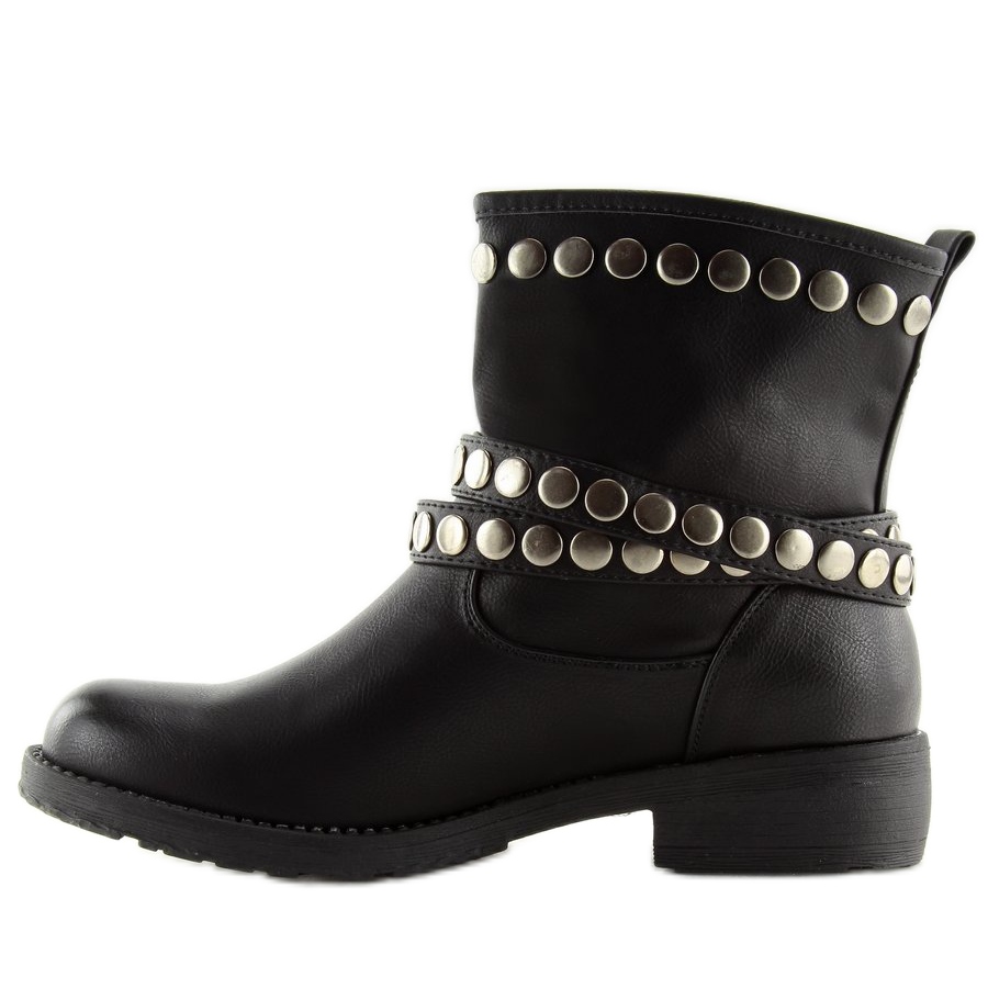 Entdecken Sie eine neue Dimension des Stils mit den schwarzen Militärstiefeln A89811. Diese einzigartigen flachen Damenschuhe vereinen Komfort und modisches Design, das mit Sicherheit die Aufmerksamkeit auf sich ziehen wird. Sie zeichnen sich durch ein breites Obermaterial und interessante Details in Form von mit Strasssteinen verzierten Riemen aus, die sich abnehmen lassen, um den Look Ihren Vorlieben anzupassen.