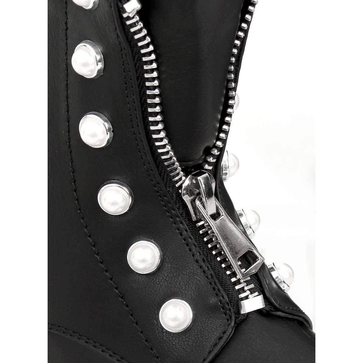 Inna marka Schwarze Militärstiefel mit Perlen 8296 Black