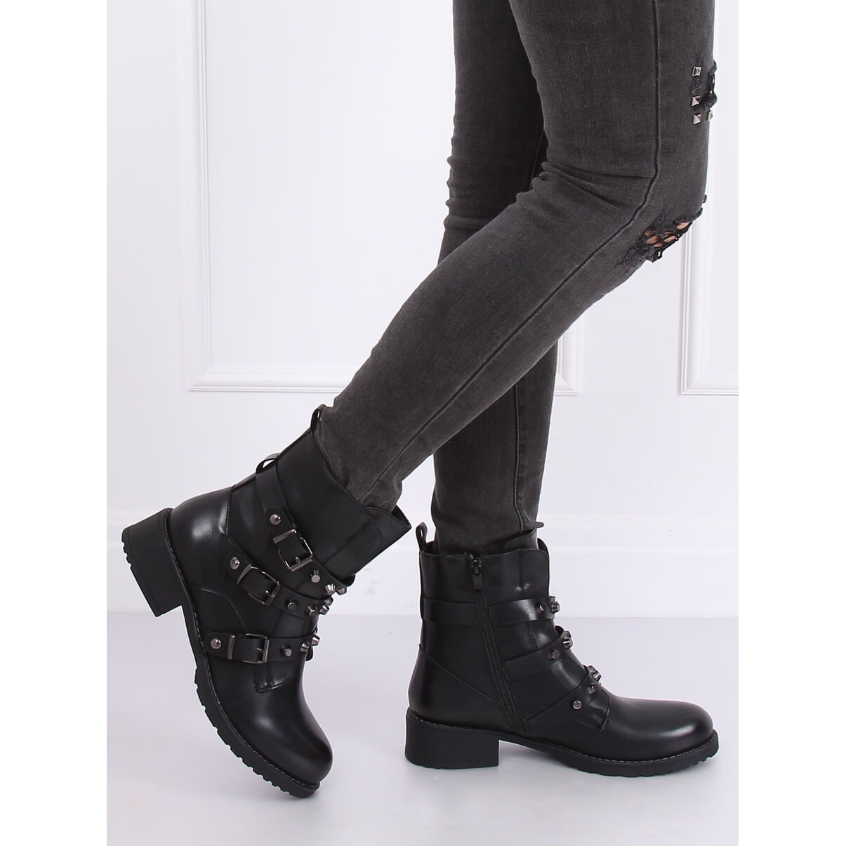 Wir präsentieren die schwarzen Militärstiefel Z195 Black, die die perfekte Ergänzung zu jedem Rock-Styling sind. Diese Damenstiefel mit breitem Absatz und 4 cm Höhe vereinen Komfort und modernes Design und sind somit eine ideale Wahl für den täglichen Gebrauch.