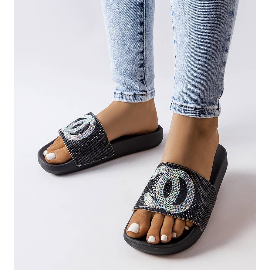 Details: Schwarze, mit Strasssteinen verzierte Pantoletten von Glendale