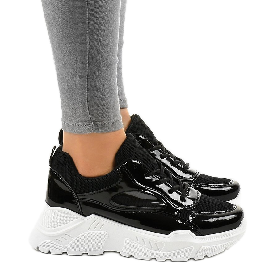 Die schwarzen, modischen Sportschuhe MS381E sind die perfekte Wahl für Frauen, die Komfort mit einem einzigartigen Stil verbinden möchten. Diese Schnürschuhe mit einer hohen weißen Sohle von 6 cm Höhe werden mit Sicherheit alle Blicke auf sich ziehen. Sie bestehen aus hochwertigem lederähnlichem Material und zeichnen sich durch eine elegante, lackierte Oberfläche aus, die ihnen ein modernes Aussehen verleiht.