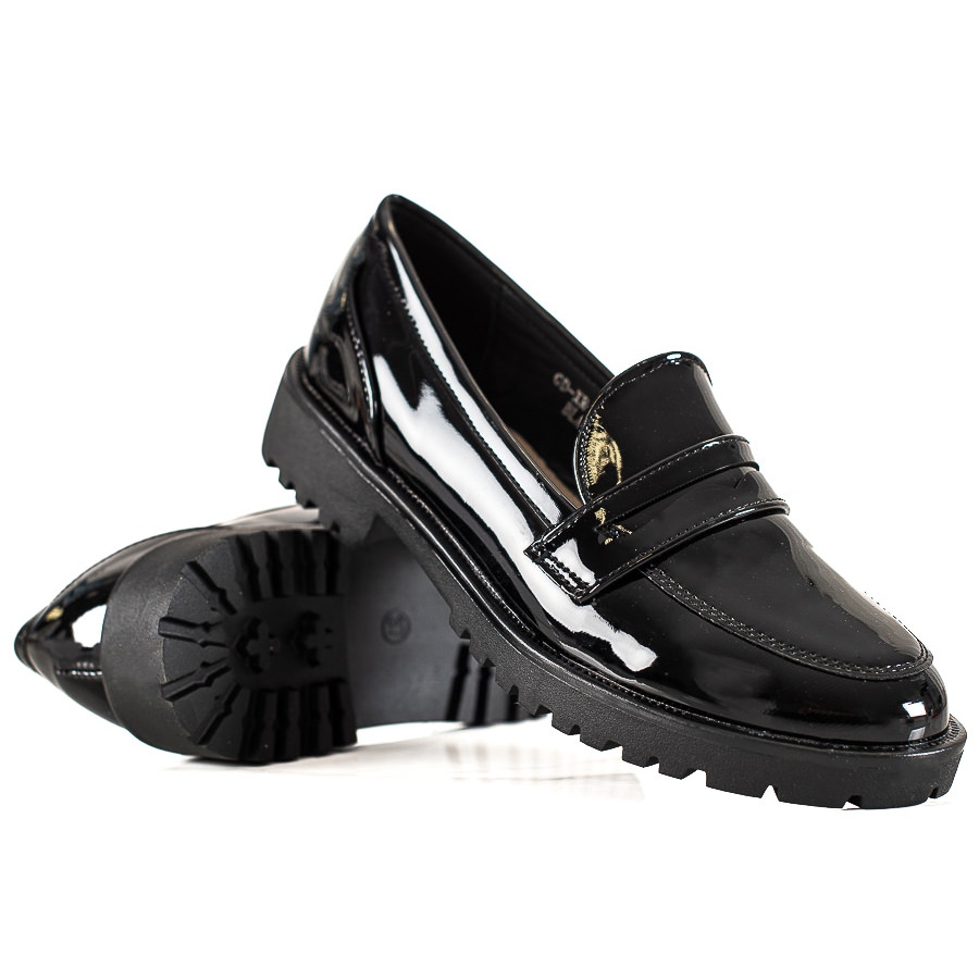 Die Mokassins bestehen aus hochwertigem ökologischem Leder, was sie nicht nur umweltfreundlich, sondern auch optisch attraktiv macht. Ihre lackierte Oberfläche sorgt für einen schicken Look und durch die schwarze Farbe passen sie perfekt zu einer Vielzahl von Stilen – von lässig bis elegant.